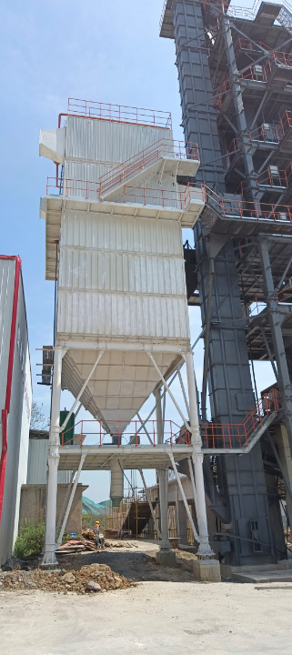 高效布袋式除塵器,采用離線清灰脈沖除塵技術(shù),將制砂過(guò)程中產(chǎn)生的粉塵收集到石粉倉(cāng)中,除塵效率高達(dá)99%;